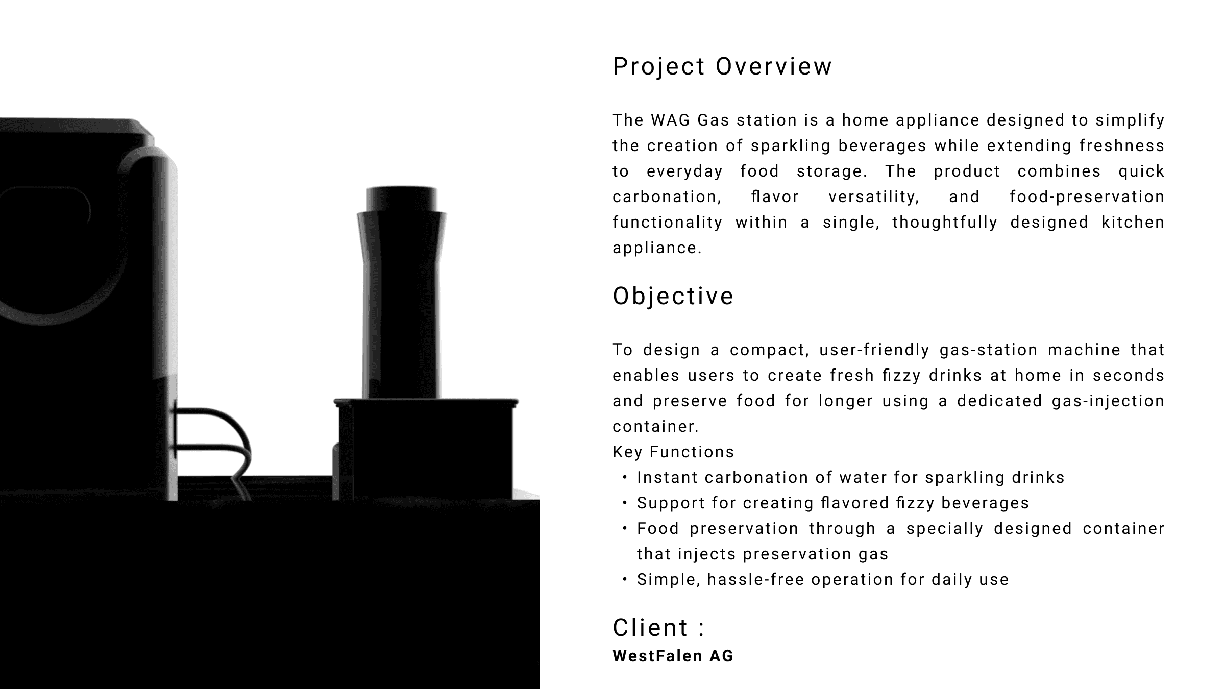 The GasStation was successfully designed, tested, and delivered to the client. The project presented several technical challenges and required close collaboration with the engineering team throughout the development process. Multiple design iterations were explored to accommodate different gas-cylinder configurations, evolving from four-cylinder to two-cylinder layouts, while refining the form to remain compact and compatible with smaller gas cylinders.