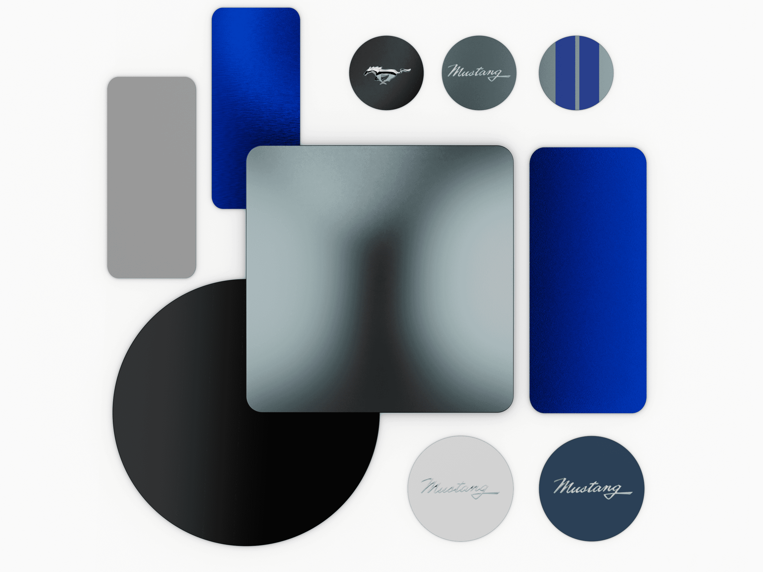 A bold, performance-driven CMF approach inspired by Mustang’s racing legacy. The approach here uses metallic tones that represent speed and performance, aligning with Gen-Z’s energetic and expressive aesthetic.