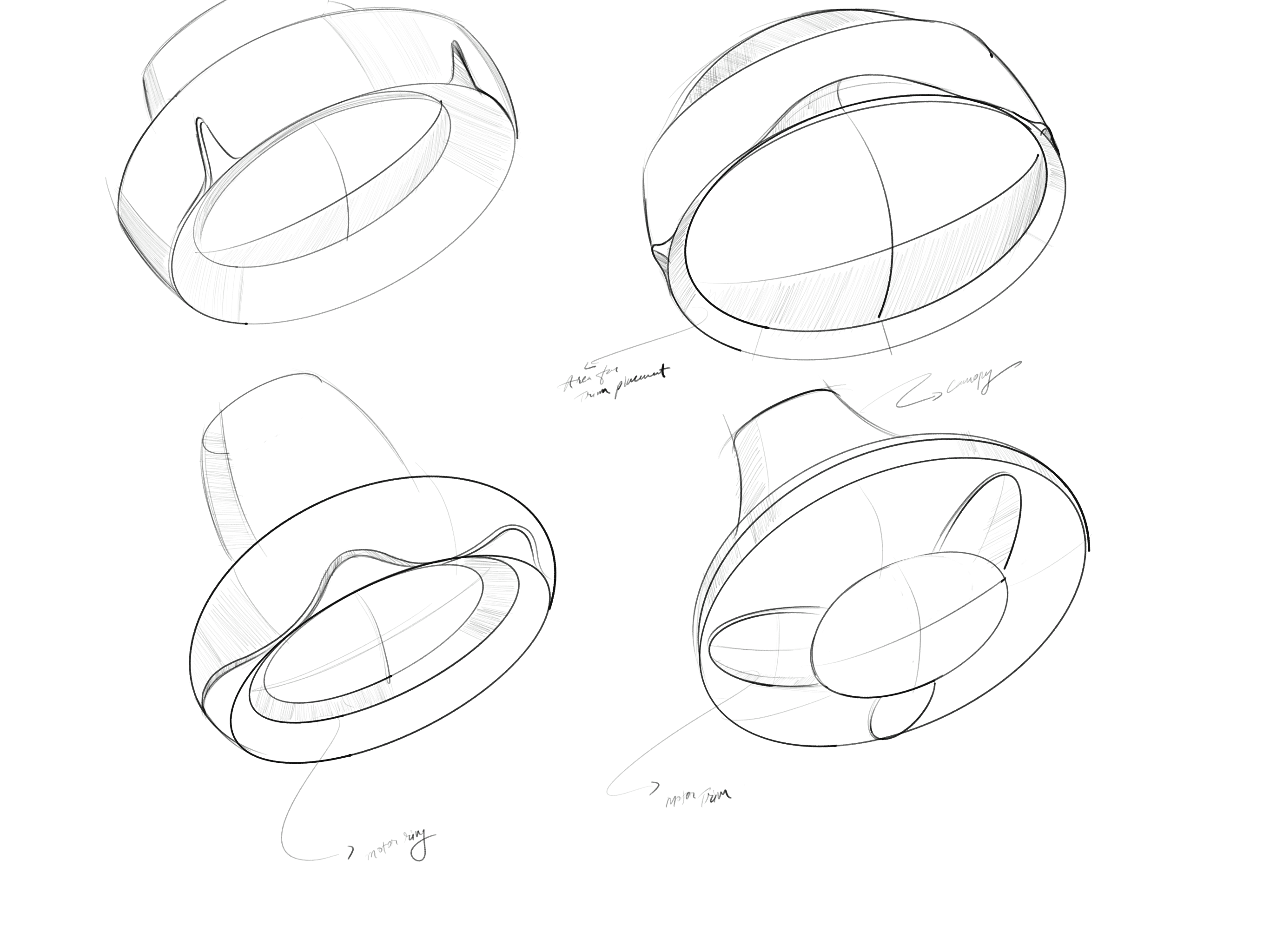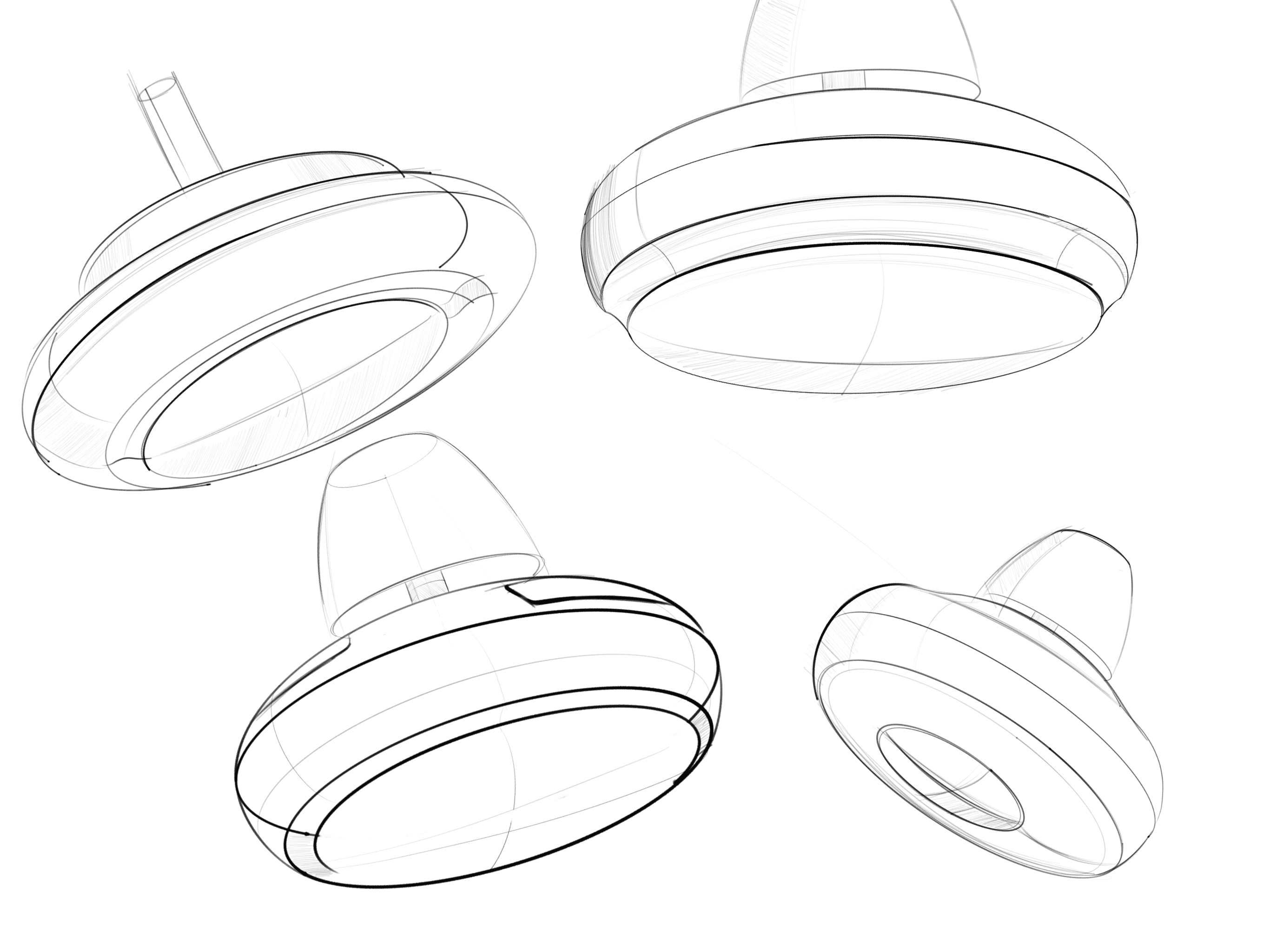 The fan housing is designed around the given technical constraints, with an aluminium body sized to a 182 mm diameter as required by the motor specifications. The form is kept bulbous and round to suit aluminium manufacturing while maintaining a soft, balanced appearance. A decorative motor ring is added as a distinct element to introduce character and visual identity without affecting functionality. The overall design balances material limitations, dimensional requirements, and a clean, rounded design language.