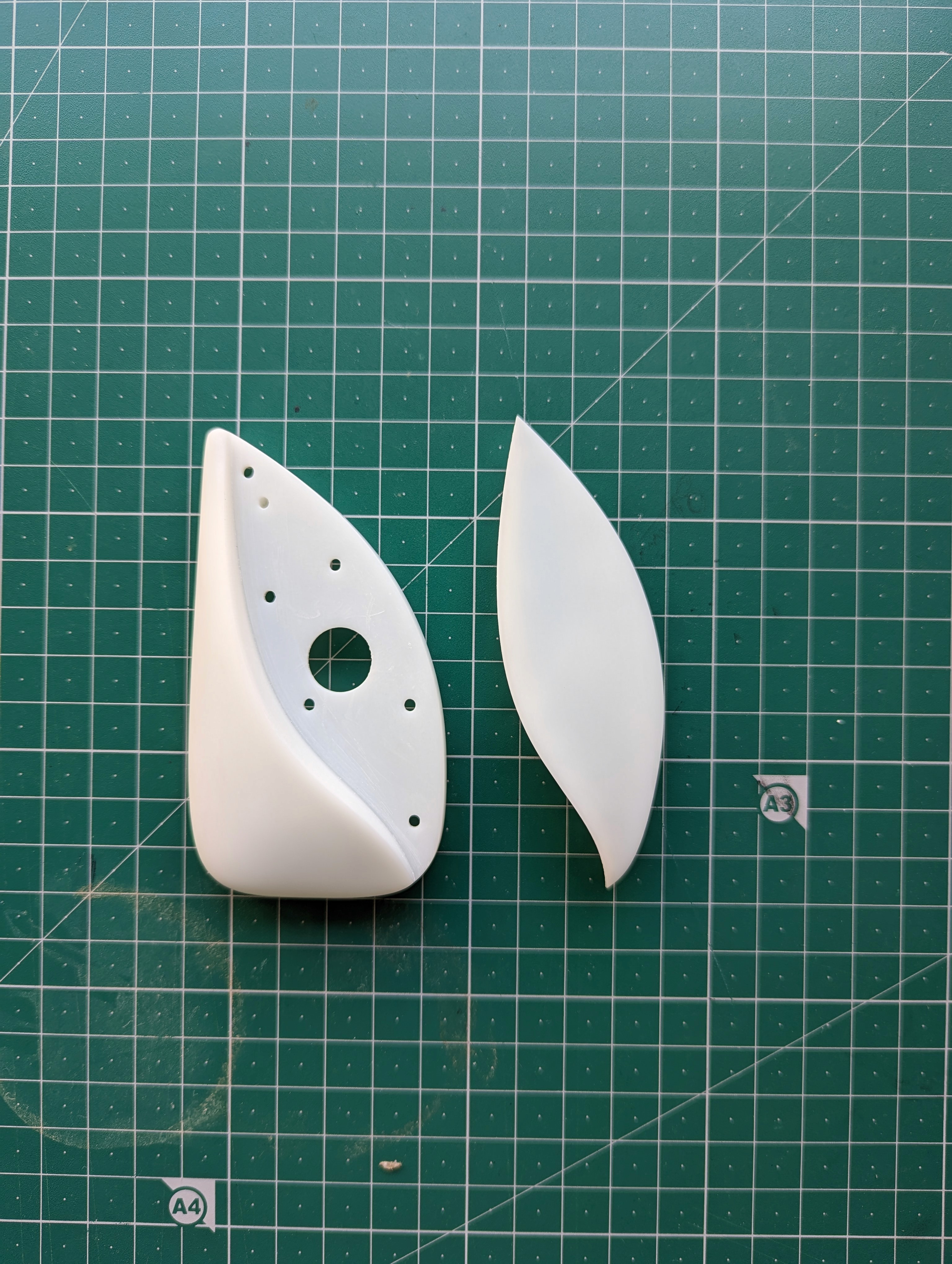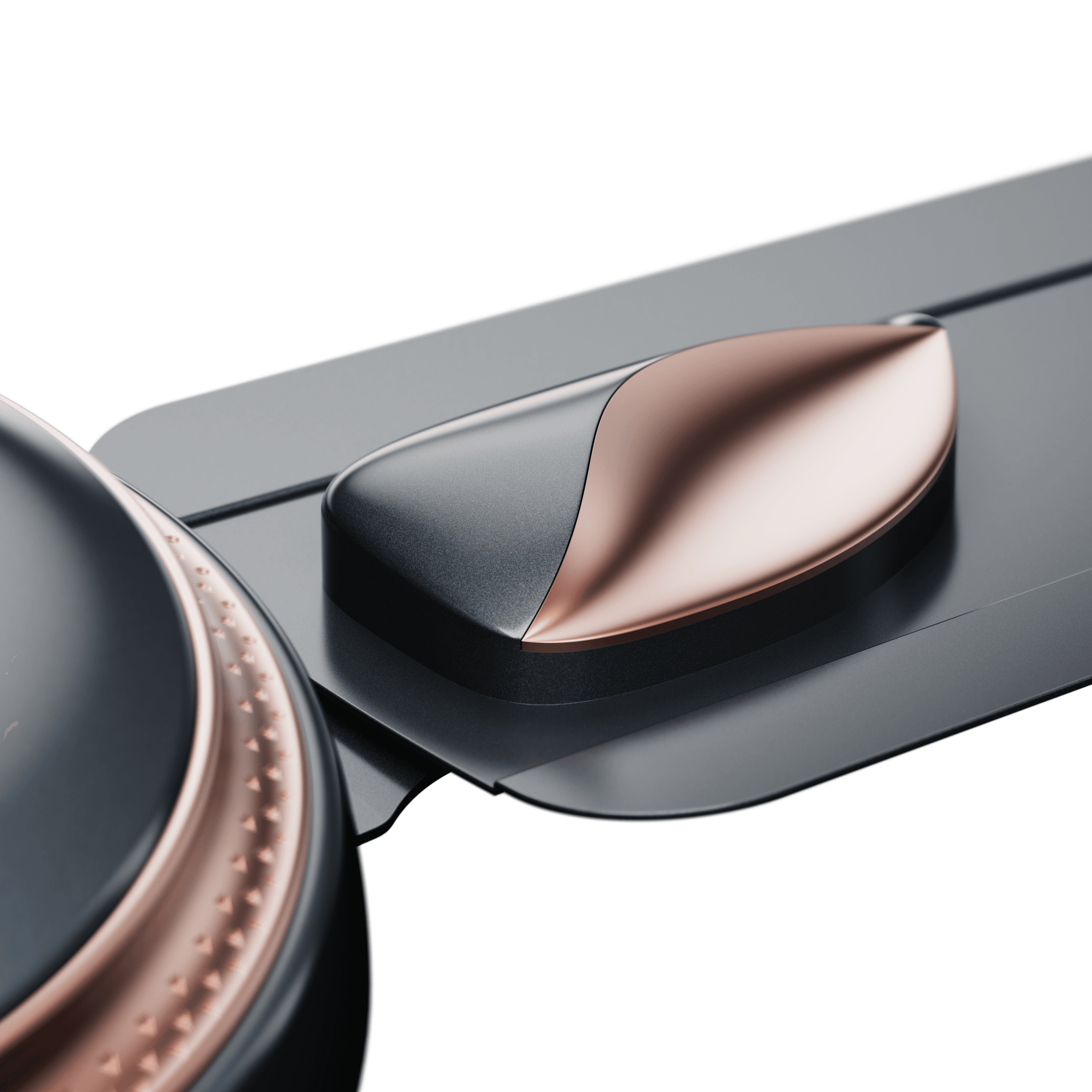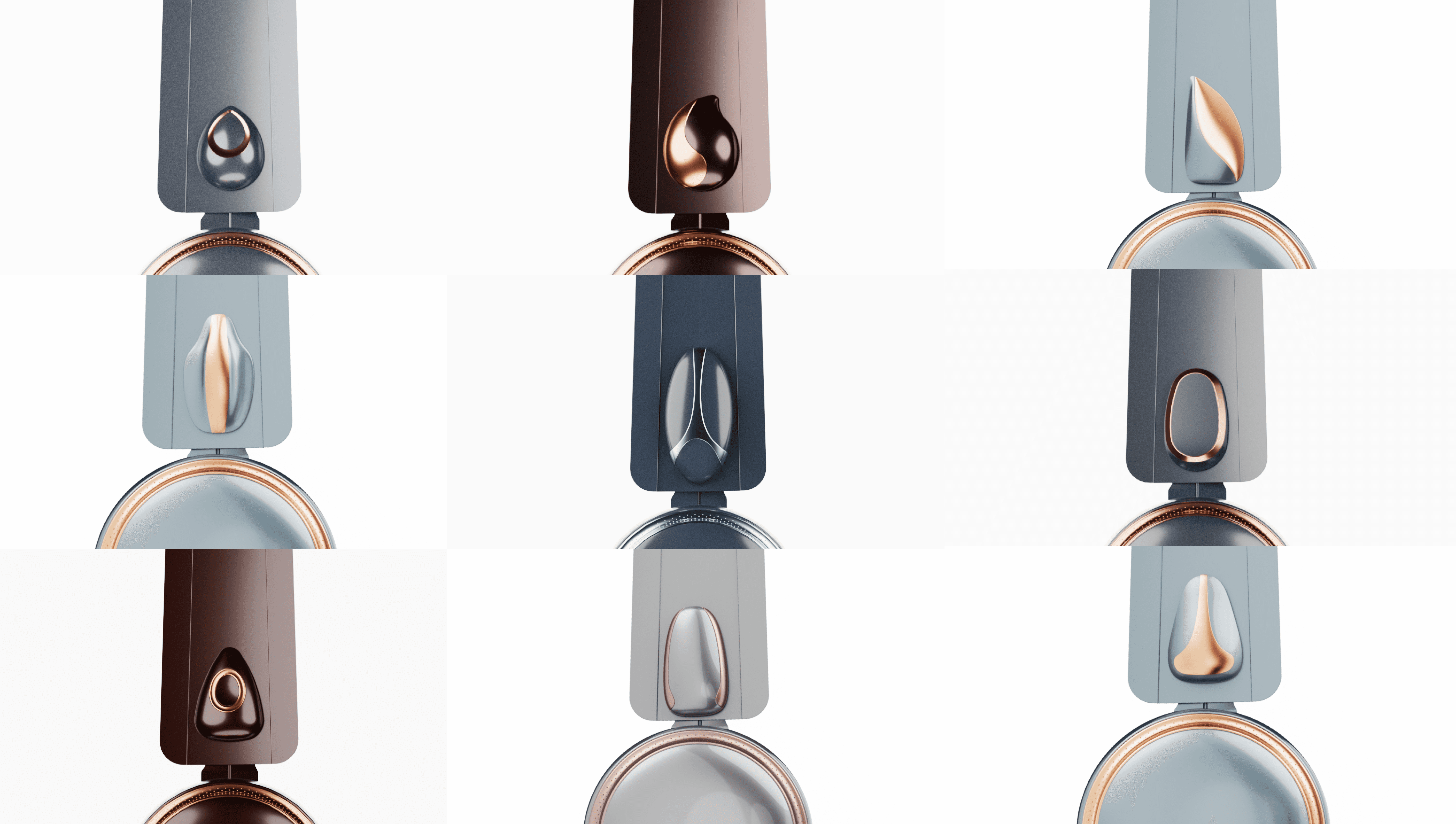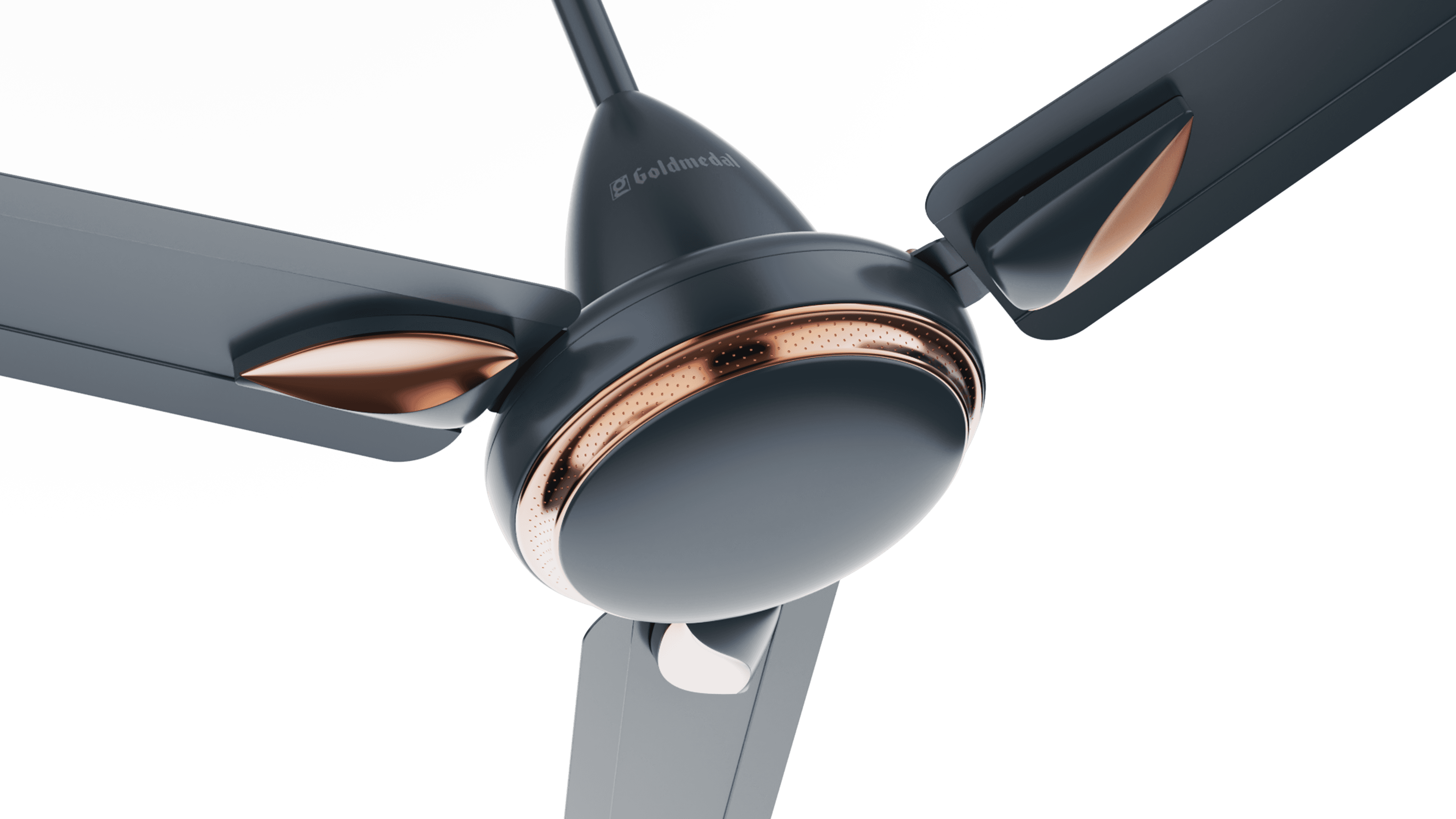 The blade trim concept is designed in two-part system to create visual hierarchy. A decorative accent element features a metallised finish that adds a refined highlight, while the primary trim body matches the fan’s overall colour palette for seamless integration. This dual-material approach balances subtle ornamentation with cohesive form, enhancing perceived quality without overpowering the fan’s design language.